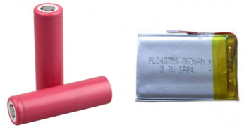 自左向右分別為標(biāo)準(zhǔn)的18650鋰電池、鋁塑復(fù)合膜封裝的聚合物鋰離子電池以及用于應(yīng)急電源使用的倍率鋰離子電池