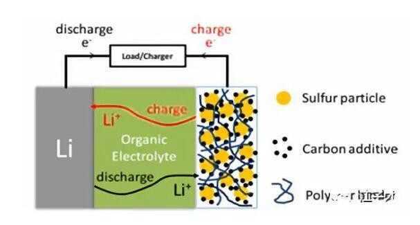 鋰硫電池,結構示意圖和方程式如下,硫也是自然界存在非常廣泛的元素,鋰硫電池較高的能量密度(2600wh/kg)有可能作為下一代鋰電池研發(fā)的重心。