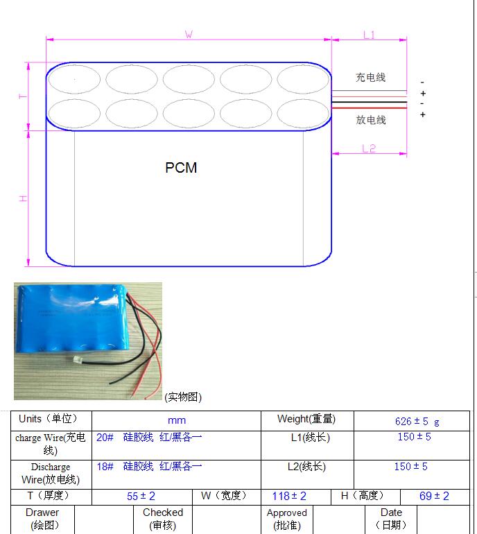 電池尺寸:MAX55×70×118mm (可根據(jù)客戶需求定制)
